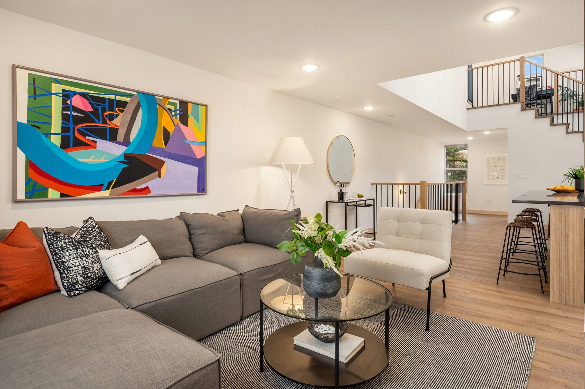 Views of Mt. Rainier, incredible natural light thanks to large windows and skylights, deck space off the main floor, direct access to the rooftop deck from the kitchen... and so much more.